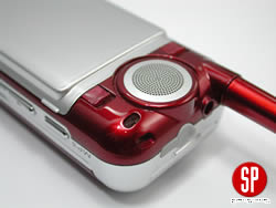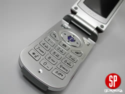 - ด้านซ้าย – ด้านขวา : - เปิดฝาด้านใน : ปุ่มซอฟคีย์ซ้ายใช้เข้าสู่เมนูหลักที่มีให้เลือกเปลี่ยนเพื่อไม่ให้เกิดความจำเจได้ 3 แบบ ส่วนปุ่มซอฟคีย์ขวาเรียกใช้งานสมุดโทรศัพท์ ที่อยู่ข้างใต้ปุ่มควบคุมเมนูใช้เรียกฟังก์ชั่นการถ่ายภาพ และชุดปุ่มตัวเลขดังเห็นได้ว่าแม้เครื่องจะมีขนาดเล็ก แต่ก็ไม่ทำให้ลำบากในการใช้งาน เพราะเท่าที่ลองใช้งานดุก็กดได้อย่างสะดวกและไม่มีผิดพลาดแต่ประการใด