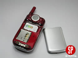 - ด้านหน้า – ด้านหลัง : เท่าที่ลองหาดูจากฟังก์ชั่นของตัวเครื่องจะไม่สามารถเปลี่ยนภาพพื้นหลังของหน้าจอด้านนอกได้ และหน้าจอด้านนอกยังใช้เป็น View finder สำหรับถ่ายภาพตัวเองด้วยครับ ในส่วนของด้านหลังตัวเครื่อง ที่เห็นเป็นวงกลมสีเงินมีรูเล็กๆ มากมายอยู่ตรงกลางเป็นลำโพงสำหรับใช้ฟังเพลง MP3 และใช้เป็นลำโพงสำหรับเสียงเรียกเข้า ถัดลงมาในบริเวณพื้นที่สีเงินทั้งหมดคือแบตเตอร์รี่ที่ใช้งานเป็นฝาหลังของตัวเครื่อง ซึ่งจะมีสลักล็อกยึดไว้ 2 ตัว ทางด้านซ้ายและขวา การเปิดให้ดันสลักขึ้นไปทางด้านบน - ด้านบน – ด้านล่าง :