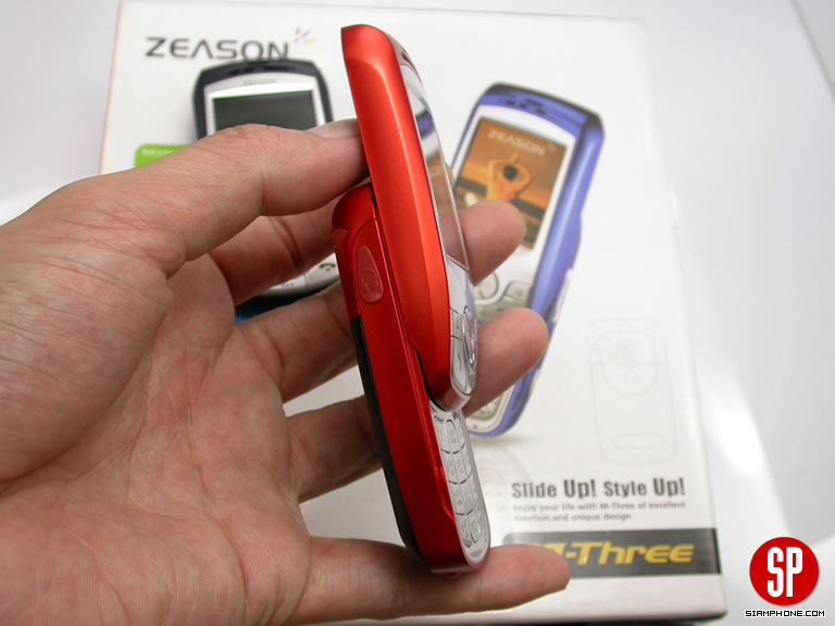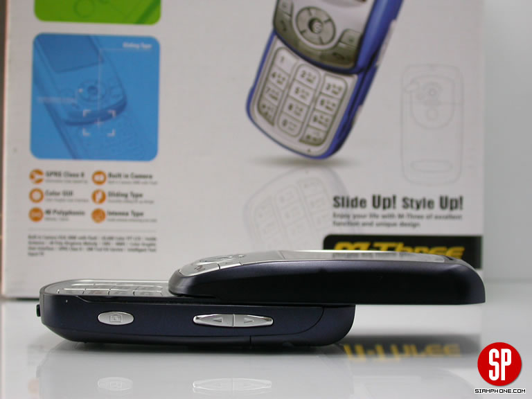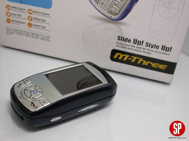 ปุ่มควบคุมเมนูจะเป็นแบบ 4 ทิศทาง (4 way navi-key) โดยจะมีปุ่มซอฟต์คีย์ขวาเรียกใช้สมุดโทรศัพท์ ด้านซ้ายสำหรับเรียกใช้งานในเมนูหลัก เมื่อลองสไลด์ลงมา แผงปุ่มกดตัวเลข+ตัวอักษรที่มีขนาดค่อนข้างใหญ่มองเห็นถนัดตา ที่ตรงกลางด้านหลังเครื่องจะเป็นเลนส์กล้องดิจิตอล พร้อมแฟลชที่ช่วยการถ่ายภาพในที่มืด ฝาหลังของ M3 จะเป็นแบบแบตเตอรี่ในตัว และตรงวงกลมๆ ที่เห็นนั่นคือ mirror ที่ใช้สะท้อนถ่ายภาพตัวเอง สำหรับปุ่มสีเงินด้านข้าง นอกจากจะใช้ปรับระดับเสียงสนทนาแล้ว ขณะที่เข้าสู่เมนูก็สามารถใช้เป็นตัวเลื่อนตำแหน่งในแต่ละเมนูได้อีกด้วย ส่วนปุ่มใกล้ๆ กัน จะเป็นปุ่มเรียกใช้งานกล้องและปุ่มชัตเตอร์ถ่ายรูป ทางซ้ายมือบนของตัวเครื่องจะมีจุกยางกันฝุ่นปิดช่องสำหรับเสียบสายชุดหูฟัง Smalltalk ที่บริเวณรอบตัวเครื่องทั้งหมด จะถูกปิดด้วยจุกยางป้องกันฝุ่นละออง ถัดไปด้านบนค่อนไปทางด้านหลังสำหรับร้อยสายคล้องคอ ส่วนด้านล่างจะเป็นช่องเสียบสายชาร์จ และสายส่งข้อมูล (Data cable)