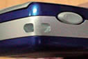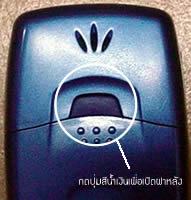 ให้ใช้นิ้วโป้งกดลงไปยังปุ่มนูนสีน้ำเงินเข้มด้านหลังตัวเครื่อง