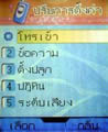 - Setting : เมนูที่เรียกได้ว่ารวมการตั้งค่าใช้งานต่างๆ ทั้งหมด ไม่ว่าจะเป็นการตั้งปลุก โดยจะเลือกตั้งให้ปลุกเพียงครั้งเดียวหรือจะปลุกตามวันที่กำหนด การตั้งภาพวอลเปเปอร์หน้าจอที่สามารถเลือกตั้งได้ทั้งจอด้านใน-นอก การตั้งปุ่มโทรด่วน การตั้งรหัสป้องกันการใช้งาน และ การเลือกรับสายที่โทรเข้ามา