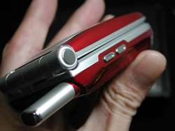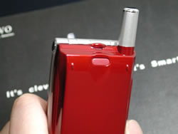 - Side View : ทางฝั่งซ้ายจะเป็นปุ่มโครเมี่ยมสำหรับเพิ่มลดระดับเสียง ในที่มืดจะใช้กดเพื่อเปิดไฟ black light สีฟ้า (กดปุ่มบน 2 ครั้ง) ส่วนทางด้านขวาล่าง จะมีช่องเสียบชุดหูฟัง Smalltalk และ ถัดไปในส่วนท้าย จะเป็นช่องเสียบสายชาร์จ โดยช่องเสียบทั้งหมด จะถูกจุกยางปิดป้องกันฝุ่นผงเข้าไปภายในเครื่องทุกช่องด้วย
