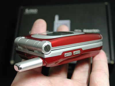 Side View : ขอบด้านข้างสีเทา และ ปุ่มโครเมี่ยมตัดกับสีแดงของตัวเครื่อง