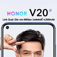 นอกจาก Honor V20 หรือ Honor View 20 จะเป็นสมาร์ทโฟนดีไซน์หน้าจอไฝ (Infinity O) ยังจะมาพร้อมฟีเจอร์รองรับการถ่ายวิดีโอแบบ Slo-Mo ได้ที่ 960fps, แบตเตอรี่ขนาด 4,000mAh และ กล้องหน้าความละเอียด 25 ล้านพิกเซล
