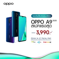 OPPO เปิดตัว “OPPO A9 2020” ถือเป็นจุดเริ่มต้นใหม่ของ ซีรีส์ A ด้วยสุดยอดสเปคเพื่อความบันเทิงทุกรูปแบบ ทั้งเล่นเกม ดูหนัง ฟังเพลงได้ “เร็ว-แรง-ลื่น สุดๆ” ด้วย RAM 8GB, ROM 128GB พร้อมแบตเตอรี่ 5,000 mAh ลำโพงสเตอริโอแบบคู่ และระบบเสียง DOLBY ATMOS เพื่อให้ประสบการณ์เสียงที่สมจริง และสนุกกับการถ่ายภาพด้วยกล้องหลัง 4 ตัว ความละเอียดสูงสุด 48MP ในราคาเพียง 8,990 บาท เปิดจองตั้งแต่ 16-27 กันยายนนี้ พร้อมรับ Smart Bag มูลค่า 1,590 บาท พร้อมรับข้อเสนอพิเศษ เริ่มเพียง 3,990 บาท เมื่อซื้อพร้อมแพ็คเกจกับผู้ให้บริการเครือข่ายที่ร่วมรายการ ทั้ง AIS, dtac และ Truemove H โดยจะวางจำหน่ายวันแรกที่ OPPO Brand Shop ทุกสาขาและตัวแทนจำหน่ายทั่วประเทศ สามารถสัมผัสของจริงและเป็นเจ้าของ OPPO A9 2020 ได้ในวันที่ 28 กันยายนเป็นต้นไป