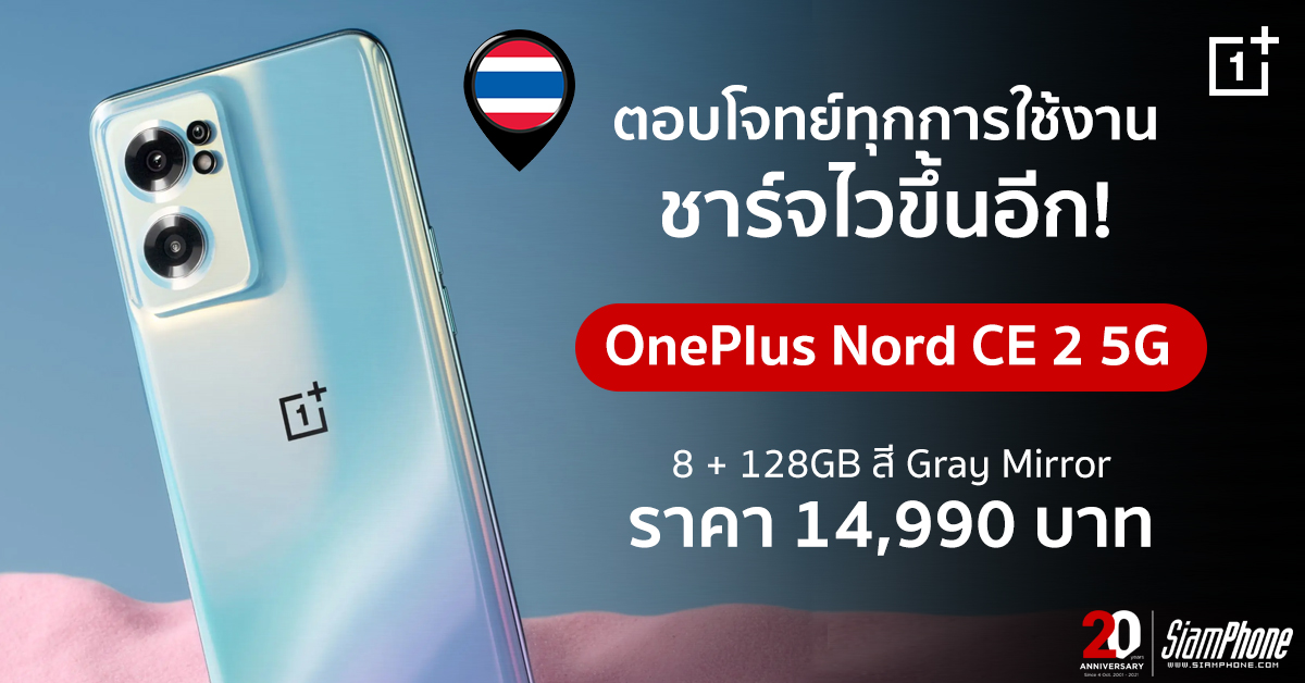 OnePlus Nord CE 2 5G เปิดราคาวางจำหน่ายประเทศไทย รุ่น RAM 8 + ROM 128GB สีเทา Gray Mirror ราคา 14,990 บาท