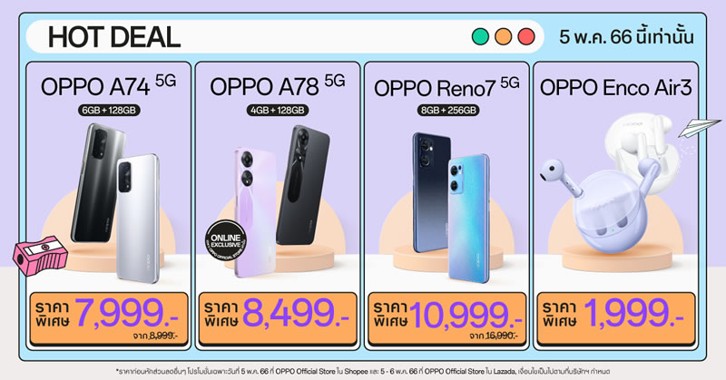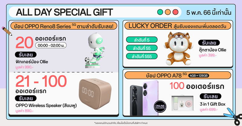 Surprise of the Day ของแถมแจกพิเศษตามช่วงเวลา วันที่ 5 พฤษภาคม 2566 เฉพาะที่ OPPO Official Store บน Shopee / Lazada เท่านั้น
