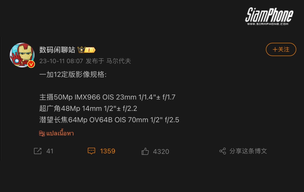 และล่าสุดทาง Digital Chat Station ได้โพสต์ถึงรายละเอียดสเปคกล้องของ OnePlus 12 โดยมีรายละเอียดดังนี้