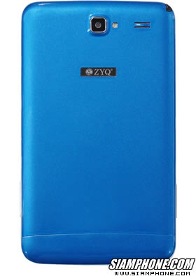 ด้านหลังของตัวเครื่อง มีลักษณะพื้นผิวราบเรียบ มันวาว สีสันสดใส ด้านบนบริเวณกึ่งกลางมีเลนส์กล้องความละเอียด 1 ล้านพิกเซล พร้อมแฟลช และถัดมามีช่องลำโพงเสียง เยื้องลงมาเพียงเล็กน้อยมีโลโก้ ZYQ บริเวณด้านล่างนั้นเป็นส่วนของฝาหลังที่สามารถเปิดออกได้ (ใช้นิ้วกดและดันลง) เมื่อเปิดฝาหลังออกจะพบช่องเสียบซิมการ์ด 1 และ 2 (รองรับซิมการ์ดแบบปกติทั้ง 2 ซิม) รวมถึงมีช่องเสียบ MicroSD Card