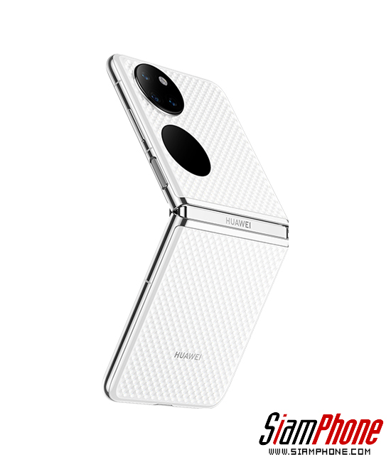 ส่วนสีที่ได้มารีวิวเป็น HUAWEI P50 Pocket สีขาว ซึ่งมีลวดลายเหมือนเพชร และมีความเป็นสามมิติ ดูเรียบหรูแบบมีสไตล์