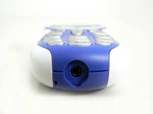 ด้านบน - มีเพียงรูร้อยสายคล้องคอที่รอดผ่านไปยังด้านหลังเครื่อง ด้านล่าง - มีช่องสำหรับเสียบสายชาร์ตแบตเตอร์รี่อยู่บริเวณกึ่งกลางเครื่อง
