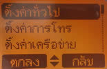 Settings ใช้สำหรับตั้งค่าต่างๆ ภายในตัวเครื่อง เช่น การเลือกภาษา แสงสว่าง ความคมชัด เสียงปุ่มกด การโอนสาย เลือกเครือข่าย และตั้งระบบป้องกันการใช้งาน เป็นต้น