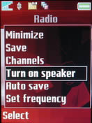 Radio - ขอตอกย้ำความเป็น Multimedia Phone ด้วยความสามารถในการฟังวิทยุภายในเครื่อง โดยในชุดหูฟังจะทำหน้าที่เป็นเสาอากาศรับสัญญาณวิทยุ รับฟังวิทยุได้ 2 ระบบ ทั้ง Stereo และ Mono บันทึกสถานีวิทยุได้สูงสุด 20 สถานี ซึ่งนอกจากจะฟังผ่านทางชุดหูฟังแล้ว ยังเลือกเปิดฟังผ่านทางลำโพงที่อยู่บริเวณด้านหลังของตัวเครื่อง โดยเสียงนั้นจัดว่าอยู่ในคุณภาพที่ดี ความชัดเจนของสัญญาณ การค้นหาสัญญาณวิทยุอัตโนมัติ หรือเลือกค้นหาแบบ Manuel นอกจากนี้ยังมีฟังก์ชั่น RDS หรือ Radio Digital Signal ใช้สำหรับดูว่าสถานีที่เรากำลังเลือกฟังอยู่นั้นชื่อสถานีอะไรได้อีกด้วย