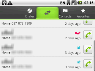 การโทร ผู้ใช้สามารถเลือกเข้าสู่ฟังค์ชั่นการโทรได้โดยการกดปุ่มโทรบนตัวเครื่อง หรือ เลือกจากรายชื่อผู้ติดต่อในสมุดบันทึกรายชื่อ หากต้องการโทรไปยังเบอร์อื่นสามารถกดหมายเลขแล้วกดโทรออกได้เลย โดยในแอพพลิเคชั่น Dialer นั้นจะมีแถบ 5 แถบ ให้เลือกใช้งาน Dialer สำหรับกดหมายเลขเพื่อโทรออก Call log สำหรับดูประวัติการใช้งาน Contact รายชื่อผู้ติดต่อที่ได้บันทึกไว้ Favorite รายชื่อที่เลือกไว้เป็นพิเศษ Groups กลุ่มของรายชื่อผู้ติดต่อ