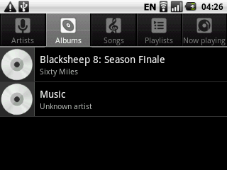 Music แอพพลิเคชั่นเล่นเพลง ไฟล์เพลงที่รองรับขึ้นอยู่กับ การรองรับของระบบปฏิบัติการณ์แอนดรอยด์ 2.1