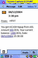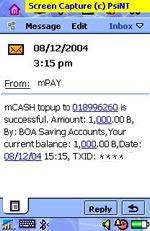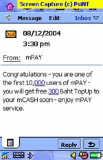 mCash : เป็นการใช้โทรศัพท์แทนกระเป๋าสตางค์โดยตรง ด้วยการเติมเงินเข้าระบบ mCash ส่วนตัวผ่านทางตู้ ATM แบบง่าย ๆ