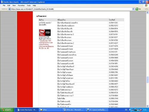 อ่านเรื่องของผมจบแล้วก็โทรสมัครกันได้เลย พอไปห้างสรรพสินค้าแถวไหนก็คอยแอบมองป้ายตามร้านต่าง ๆ หรือไม่ก็โทรถาม Call Centre ก็ได้ว่าพื้นที่ที่เราอยู่นี่มี mPay Service อะไรให้บริการบ้าง แต่จะให้ดีกว่านั้น ก่อนไปก็ลองหาข้อมูลของร้านหรือ Website ที่แป็นพันธมิตรกับ AIS และรองรับการใช้จ่ายผ่าน mPay ก่อนที่ https://mpay.ais.co.th/web/CT_OnsiteMerchants_th.html ก็ดีนะครับ ในนั้นมีชื่อร้านค้าและบริการมากจนผมตกใจเลย แค่ในขั้นต้นก้มีร้านค้ากว่า 200 ร้านและจุดบริการกว่า 500 จุดและจะมีเพิ่มต่อไปอีกเรื่อย ๆ ด้วย
