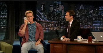ตัวละครในรายการทีวีรายแรกของโลกที่ได้ใช้งานมือถือ