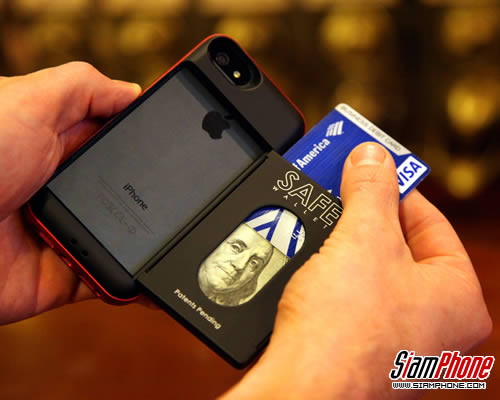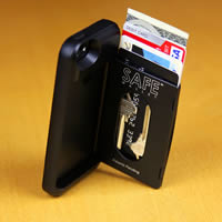 SAFE Wallet เคสกระเป๋าเงิน ดีไซน์ทันสมัย ออกแบบมาสำหรับ iPhone 5 มีขนาด 132 x 66 x16 มิลลิเมตร หนัก 34 กรัม ตัวเคสทำมาจากพลาสติกโพลีคาร์บอเนตมีความแข็งแรงทนทาน ด้านในประกอบไปด้วยเยื่อบุบางเพื่อป้องกันตัวเครื่องจากการกระแทกและรอยขีดข่วน ด้านหลังออกแบบเป็นช่องฝาพับ สำหรับใส่เงินและนามบัตร โดยสามารถใส่นามบัตรได้สูงถึง 4 ใบ อีกทั้งฝาพับด้านหลังยังสามารถทำเป็นขาตั้ง iPhone 5 ได้อีกด้วย