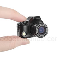Mini Camera กล้องดิจิตอลรูปร่างเล็ก ดีไซน์ทันสมัย ออกแบบมามีลักษณะคล้ายกล้อง DSLR ทั่วไป ตัวกล้องมีขนาดเพียง 3.0 x 3.5 x 2.7 เซนติเมตรเท่านั้น มีช่องสำหรับเสียบการ์ด MicroSD และช่องสำหรับแบตเตอรี่ขนาด 200 mAh