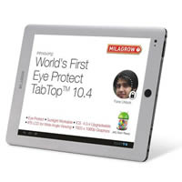 Milagrow TabTop PC 10.4 (MGPT05) แท็บเล็ตรันบนแอนดรอยด์ 4.0 (จะได้รับการอัพเวอร์ชั่น 4.1 Jelly Bean) มีหน้าจอกว้าง 9.7 นิ้ว ความละเอียด HD 1024 x 768 พิกเซล พร้อมกล้องคิจิตอลความละเอียด 2 ล้านพิกเซล