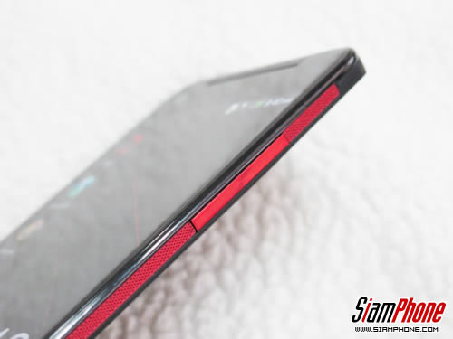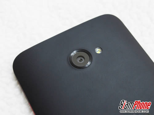 ด้านหลัง มีฝาหลังโค้งเข้าหาตัวเครื่องด้านหน้าเล็กน้อย ใช้วัสดุที่ให้ความรู้สึกคล้ายผิวยางเรียบๆ