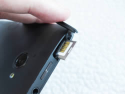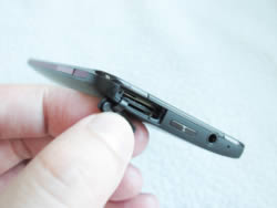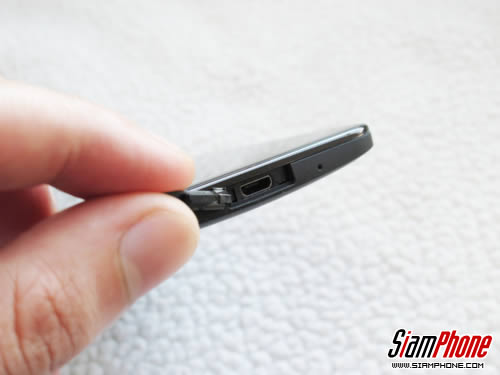 ด้านล่างตัวเครื่องมีช่องเสียบพอร์ต microUSB พร้อมฝาปิด ถัดไปข้างขวามีช่องไมโครโฟน