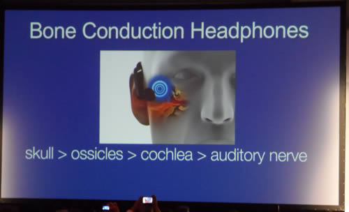 ในงาน CES 2013 Panasonic ได้แนะนำอุปกรณ์ใหม่รุ่น RP-BTGS10 ซึ่งเป็นหูฟังไร้สายที่ไม่เหมือนใคร ทำงานด้วยการส่งผ่านสัญญาณเสียงจากบริเวณส่วนบนของโหนกแก้มเพื่อส่งเสียงเพลงเข้าไปในหัวโดยตรง