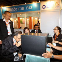 อ.สุรศักดิ์ ศรีสุวงศ์ พร้อมด้วย อ.สุพัตรา ทองเนื้อห้า คุณครูในโครงการส่งเสริมการผลิตครูที่มีความสามารถพิเศษทางวิทยาศาสตร์และคณิตศาสตร์ (สควค.) ของ สสวท. ที่เคยมีโอกาสได้เข้าร่วมโครงการความร่วมมือระหว่างไทยกับเซิร์น (CERN: The European Organization for Nuclear Research) หรือ องค์กรเพื่อการวิจัยนิวเคลียร์แห่งยุโรป ได้มาสาธิตทดลองเครื่องตรวจวัดอนุภาคอย่างง่าย ทำจากวัสดุหาง่ายทั่วไปราคาไม่แพง ให้แก่ครูและผู้สนใจในงานการประชุมวิชาการวิทยาศาสตร์ คณิตศาสตร์ ในโรงเรียน ครั้งที่ 21 (วทร. 21) เพื่อถ่ายทอดองค์ความรู้ให้ครูสามารถนำไปผลิตเองและไปจัดกิจกรรมการเรียนการสอนวิทยาศาสร์ในชั้นเรียนได้ ณ ศูนย์นิทรรศการและการประชุมไบเทค บางนา เมื่อเร็วๆ นี้