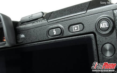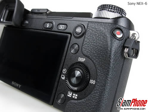 ในส่วนด้านขวาของหลังตัวกล้อง จะมียางรองนิ้วพร้อมปุ่มวิดีโอ และด้านบนจะเป็นปุ่ม AEL ใช้ล๊อคค่าแสงที่ต้องการ ถัดลงมาเป็นปุ่มซอฟต์คีย์ (Soft Key) ซึ่งในกล้อง Sony NEX-6 จะมีปุ่มซอฟต์คีย์ทั้งหมด 3 ปุ่ม หากต้องการใช้งานฟังก์ชั่นที่มุมขวาบนของหน้าจอ ให้ใช้ปุ่มซอฟต์คีย์ A เช่น การเข้าสู่เมนู หรือย้อนกลับไปยังโปรแกรมก่อนหน้า ต่อมาหากต้องการใช้ฟังก์ชั่นที่มุมขวาล่างของหน้าจอ ให้กดที่ปุ่มซอฟต์คีย์ B อยู่ล่างสุด เช่น การเชื่อมต่อเพื่อเปิดดูภาพถ่ายบนสมาร์ทโฟน/แท็บเล็ต หรือใช้เป็นปุ่มลบ และหากต้องการใช้ฟังก์ชั่นที่แสดงตรงกลาง ให้กดที่ปุ่มซอฟต์คีย์ C ซึ่งจะอยู่ตรงกลางของปุ่มควบคุมที่เป็นแบบวงแหวน