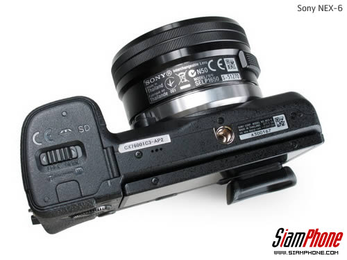ตัวกล้องด้านล่างมีช่องใส่แบตเตอรี่ และช่องเสียบการ์ดหน่วยความจำภายนอก SD Card
