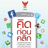 กสทช. เชิญร่วมงาน "คิดก่อนคลิก Cybersecurity มหัตภัยปลายนิ้ว" เพื่อร่วมรับฟังข้อมูลและแนวทางการป้องกันความเสี่ยงต่างๆ จากการทำธุรกรรมผ่านมือถือ ณ ลานชั้น 1 ห้างเทอร์มินัล 21 ระหว่างวันศุกร์ที่ 25 - วันอาทิตย์ที่ 27 มกราคมนี้ เวลา 10.00 - 20.00 น.