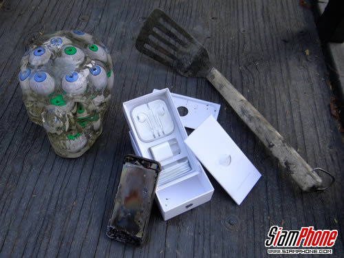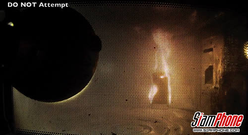 เห็นได้ชัดว่าหลังจากที่ไมโครเวฟเริ่มทำงานไม่กี่วินาที iPhone 5 ก็ดับลง และหลังจากนั้นก็เกิดควันและประกายไฟขึ้นที่ด้านล่าง ไม่กี่นาทีต่อมา iPhone 5 ก็ลุกเป็นไฟทั้งเครื่อง ซึ่งเมื่อนำออกมาปรากฎว่าบริเวณตัวเครื่องด้านหน้าแทบจะไม่เหลือเคล้าเดิมให้เห็น แต่ด้านหลังยังคงปรากฎให้เห็นฝาหลังสีขาว-เงิน และสัญลักษณ์ Apple ชัดเจน ดังนั้นจึงเป็นที่ยืนยันแล้วว่าคุณไม่สามารถชาร์จแบตเตอรี่ให้กับ iPhone 5 หรือ iPhone 4s หรืออุปกรณ์ใดๆ ก็ตามด้วยการนำเข้าไมโครเวฟ เพราะนอกจากจะชาร์จไฟไม่เข้าแล้ว ยังทำให้เครื่องของคุณพังอีกด้วย แต่ด้วย iPhone 5 เครื่องนี้ยังใหม่เพราะเพิ่งจะแกะกล่องก่อนเข้าไมโครเวฟไม่กี่นาที แถมยังผ่านการทำให้สุกแล้วด้วย เขาจึงประกาศขายต่อในราคา $3,001 หรือประมาณ 89,000 บาท บนเว็บไซต์ eBay โดยเขาโฆษณาว่ามันกรุบและกรอบมากๆ เป็นคุณจะซื้อหรือป่าวล่ะ?