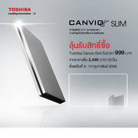 พิเศษสุดด้วยกิจกรรมลุ้นรับสิทธิ์ซื้อ Canvio Slim จากราคา 2,490 บาท ได้ในราคาเพียง 999 บาท รวม 10 รางวัล ร่วมกิจกรรมได้ที่ Facebook เพจโตชิบาโน้ตบุ๊กตั้งแต่ วันนี้ – 13 กุมภาพันธ์ 2556 นี้เท่านั้นคลิกเลยที่! http://www.facebook.com/ToshibaNotebookPC/app_471598112897842