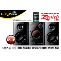 บริษัท โกรว์ ริช เอ็นเทอร์ไพรซ์ จำกัด ผู้จัดจำหน่าย เครื่องเล่นดีวีดี โฮมเธียเตอร์ แบรนด์ Leona ขอนำเสนอ Micro Component น้องใหม่สีสุดจี๊ด Leona Zenith 948 IPHONE docking station ลำโพงดีไซน์ล้ำทันสมัย รองรับการใช้งานเครื่อง IPHONE สามารถชาร์ตแบตเตอรรี่พร้อมฟังเพลงเบาๆ ในห้องแบบสบายๆ ง่ายต่อการควบคุมด้วยรีโมทคอนโทรล รองรับการเล่นแผ่น DVD/ SVCD/ VCD/ CD/ MP3/ MP4/ MPEG4 สามารถเล่นเพลง MP3 จากเครื่องเล่น MP3 และ USB Flash Drive ด้วยช่องต่อ Card Reader ด้านหน้า Built-in 2.0 channel amplifier output:25W x 2 (RMS) มีระบบจูเนอร์ พร้อมช่องสัญญาณแบบ HDMI ที่ให้คุณเชื่อมสัญญาณภาพไปยังจอ LCD เสมือนมีเครื่องฉายภาพ คุณภาพดีอีกเครื่องอยู่ที่บ้านของคุณ