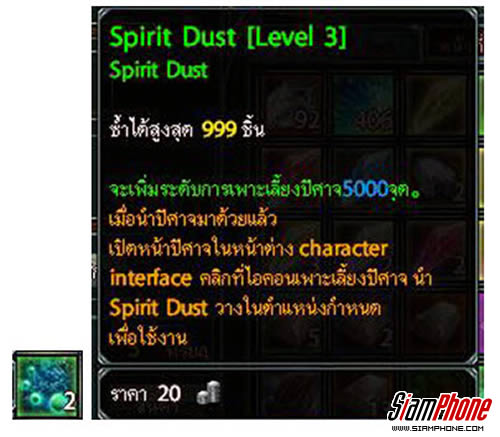 ตัวอย่าง Spirit Dust ที่ใช้เพิ่มค่าประสบการณ์สัตว์เลี้ยง