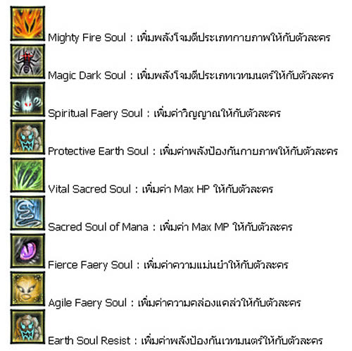 ภาพตัวอย่างของ Slot วิญญาณ และชนิดที่จะต้องติดตั้งให้กับปีศาจ