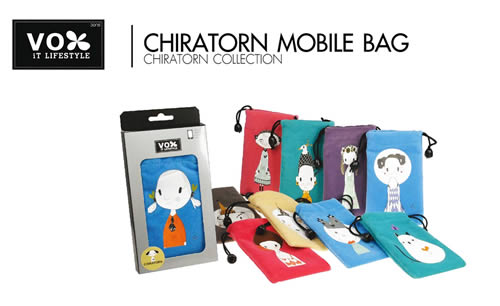 VOX ผู้ผลิตและจัดจำหน่ายอุปกรณ์คอมพิวเตอร์แอนด์ดิจิตอลแอสเซสเซอรี่เปิดตัว“VOXMobile Bag License” ซองใส่มือถือลิขสิทธิ์แท้ ผลงานภาพวาดของ มล.จิราธร จิรประวัติภาพวาดลายการ์ตูนตัวละครน่ารักๆ 10 ลวดลาย โดยผลิตจากวัสดุเกรด A ด้านนอกนั้นเป็นผ้ากำมะหยี่เนื้อนุ่ม คุณภาพดี เพิ่มความเก๋ไก๋ด้วยลวดลายการ์ตูนยอดนิยมป้องกันรอยขีดข่วน และแรงกระแทกได้เป็นอย่างดี