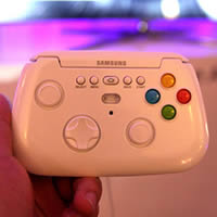 Samsung โชว์อุปกรณ์ควบคุมการเล่นเกมโดยที่ไม่ต้องใช้สาย โดยรองรับการใช้งานผ่านการเชื่อมต่อผ่านทางบลูธูทออกแบบมาสำหรับใช้งานร่วมกันกับ Samsung Galaxy S4 เป็นหนึ่งในอุปกรณ์ที่มีขนาดเล็ก และมีน้ำหนักเบากว่า Xbox ด้วยวัสดุที่ทำมาจากพลาสติก พร้อมมอบความสะดวกให้กับผู้ใช้ด้วยการออกแบบตัวอุปกรณ์ที่มีปุ่มควบคุมทิศทางแบบจอยอนาล็อกและปุ่มจอยสติ๊ก ซัมซุงยังไม่ได้บอก รายละเอียดเกี่ยวกับการกำหนดราคา คาดว่าจะเริ่มออกวางจำหน่ายอย่างเป็นทางการในเดือนพฤษภาคมนี้