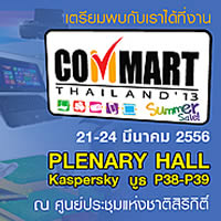และเช่นเคยพลาดไม่ได้กับ Kaspersky Anti-Virus 2013 ในราคาสุดช็อก ช่วงนาทีทอง 1 PC เพียง 199 บาท พร้อมร่วมเล่นเกมส์ชิงของรางวัลมากมาย ห้ามพลาด งาน Commart Thailand 2013 วันที่ 21-24 มีนาคมนี้ เวลา 10.00 – 20.00 น. ที่บูธ P38-39 ใน Plenary Hall ศูนย์การประชุมแห่งชาติสิริกิติ์
