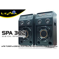 บริษัท โกรว์ ริช เอ็นเทอร์ไพรซ์ จำกัด ผู้จัดจำหน่าย เครื่องเล่นดีวีดี โฮมเธียเตอร์ แบรนด์ Leona ขอนำเสนอ ลำโพงกลางแจ้งน้องใหม่ รุ่นล่าสุด Leona SPA 302 2.0 CH Speaker ลำโพงมากความสามารถ กำลังขับ (Output Power) : 80W x 2 RMS มาพร้อมขนาดลำโพง (Driver) : Subwoofer 10" x 2 และ Tweeter 2" x 4" ตอบสนองความถี่ (Fequency Reaspone) : 35 Hz - 20 KHz สามารถเล่นเพลง MP3 ได้โดยตรงจากตัวลำโพง ผ่าน USB หรือ SD การ์ด มีช่องต่อไมโครโฟน 2 ช่อง พร้อมช่อง ต่อกีต้าร์ 1 ช่อง มีภาครับวิทยุ FM ในตัวมี EQ สามารถปรับแต่งเสียงได้