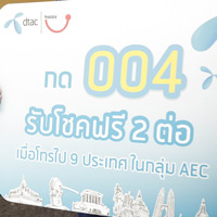 ลูกค้าดีแทคและแฮปปี้ที่ใช้บริการกด 004 โทรทางไกลไปต่างประเทศ สามารถเข้าร่วมแคมเปญ 004 AEC โชค 2 ต่อได้ โดยการกดสมัครเพียงครั้งเดียวฟรีที่ *7577 ได้ตั้งแต่วันนี้ถึงวันที่ 30 มิถุนายน 2556 เมื่อโทรไปประเทศในกลุ่ม AEC 9 ประเทศ ประกอบด้วย พม่า, ลาว, กัมพูชา, เวียดนาม, มาเลเซีย, บรูไน, สิงคโปร์, อินโดนีเซีย หรือฟิลิปปินส์ โดยมีรายละเอียดดังนี้