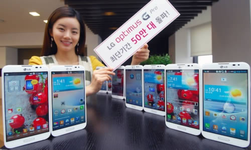 แม้ว่าเรายังไม่มีโอกาสได้สัมผัสกับ LG Optimus G Pro สมาร์ทโฟนกึ่งแท็บเล็ตที่มีขนาดหน้าจอใหญ่ถึง 5.5 นิ้ว ซึ่งขณะนี้ยังคงมีวางจำหน่ายในประเทศเกาหลีเท่านั้น ล่าสุดทาง LG เผยว่าโทรศัพท์รุ่นดังกล่าวสามารถทำยอดขายในบ้านเกิดตอนช่วงเปิดตัวได้ถึง 10,000 เครื่อง และภายในเวลา 40 ให้หลังก็สามารถทำยอดทะลุ 500,000 เครื่องไปแล้ว