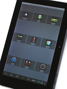 จอแสดงผลของ WorldTech SmartTab PRO มีรูปแบบสีสันสดใส เมื่อผู้ใช้งานต้องการเพิ่มแอปพลิเคชั่น หรือวิดเจ็ตมาไว้ในหน้าจอหลักให้ใช้นิ้วแตะที่ไอคอน