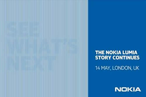 โนเกียเตรียมเปิดตัวอุปกรณ์ตระกูล Lumia รุ่นถัดไปที่กรุงลอนดอน ประเทศอังกฤษ ในวันที่ 14 พฤษภาคมนี้โดยใช้ชื่องานว่า THE NOKIA LUMIA STORY CONTINUES ซึ่งโนเกียบอกใบ้โดยใช้คำ 3 คำเท่านั้นคือ "SEE WHAT'S NEXT" เพื่อสื่อว่าในวันดังกล่าวทุกคนจะได้เห็นถึงความเปลี่ยนแปลงของอุปกรณ์ Lumia รุ่นต่อไป