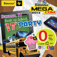 วันที่ 2 ของงาน BaNANA IT MEGA COM 2013 “Back to School IT PARTY” พบกับสินค้านาทีทองลดสูงสุด 80% อาทิ โทรศัพท์ HTC One X จากราคาปกติ 19,900 บาท เหลือเพียง 12,900 บาท และลำโพง Creative A520 จากราคา 1,590 บาท เหลือเพียง 890 บาท วันละ 2 รอบ ในช่วงเวลา 12.30 และ 15.30 น. อีกทั้งยังพบกับกิจกรรมที่ช่วยส่งเสริมพัฒนาการสำหรับคุณหนูๆ ทั้งนิทานหุ่นมือ และกิจกรรม DIY ระบายสีสดใส ตั้งแต่วันนี้ – 7 พฤษภาคม 2556 เวลา 10.00-21.00 น. ณ ลานเซ็นเตอร์คอร์ท ชั้น 1 ศูนย์การค้าแฟชั่นไอส์แลนด์ รามอินทรา ดูรายละเอียดเพิ่มเติมได้ที่ http://www.bananait.com/megacom