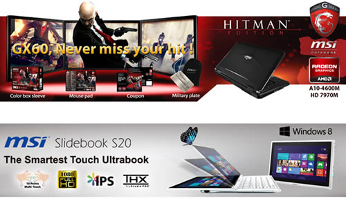 อีกทั้งในงานนี้ทาง MSI ยังตอกย้าความเป็นผู้นาทางด้านเกมมิ่งโน้ตบุ๊คของเมืองไทย ด้วยการเปิดตัวเกมมิ่งโน้ตบุ๊ครุ่นใหม่ล่าสุด ให้ชาวไทยได้ยลโฉมก่อนใครในโลก ทั้ง MSI GX70 เกมมิ่งโน้ตบุ๊คสายพันธ์แกร่ง ที่แรงจนฉุดไม่อยู่ด้วยการ์ดจอ HD8970 ที่ประกบคู่มากับ APU A10 รุ่นอัพเกรด 5750Mรองรับเทคโนโลยี Eyefinity ได้ถึง 3 จอ ให้ภาพและอารมณ์สมจริงเสมือนคุณได้หลุดเข้าไปอยู่ในเกมด้วยตนเอง และอีกรุ่นหนึ่งที่พิเศษสุดนั่นก็คือ MSI GE40 น้องใหม่มาแรงของตระกูล MSI G-Series ที่จะกระชากใจคอเกมทุกคน ด้วยดีไซน์ที่บางเบาหนาไม่ถึง 1 นิ้ว แต่ประสิทธิภาพนั้นไม่เป็นรองใคร จะเกมไหนๆก็เล่นได้ไม่สะดุด ตอบโจทย์สาหรับเกมเมอร์ที่ชอบเล่นเกมนอกสถานที่ ทุกที่ทุกเวลา อีกด้วย