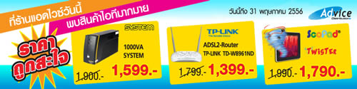 ที่ร้านแอดไวซ์วันนี้ พบสินค้าไอที “ราคาถูกสะใจ” ลดท้าลมร้อน ทุกสาขาทั่วไทย พร้อมสินค้าจัดรายการ