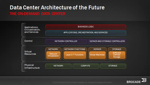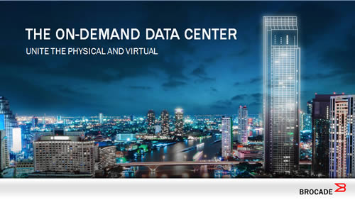ยุทธศาสตร์ "On-Demand Data Center™” จากโบรเคด แสดงถึงวิวัฒนาการครั้งใหญ่ของระบบเน็ตเวิร์กที่มุ่งไปสู่ระบบที่เน้นเวอร์ช่วล ยืดหยุ่น และเป็นระบบเปิด โดยเป็นโครงสร้างพื้นฐานที่รวมเอาทั้งส่วนประกอบที่เป็นฮาร์ดแวร์และเวอร์ช่วลเข้าด้วยกัน โดยผู้ใช้งานสามารถทำโพรวิชั่นทั้งเรื่องความจุ พลังในการประมวลผล เน็ตเวิร์ก และสตอเรจ ซึ่งจำเป็นในการรันแอพพลิเคชั่นสำคัญๆ ให้เร็วยิ่งขึ้น และง่ายกว่าเดิมเมื่อเทียบกับเครือข่ายเน็ตเวิร์กที่มีในดาต้าเซ็นเตอร์เดิม โดยเทคโนโลยีแฟบริก Brocade® VCS® ที่ก้าวนำวงการคือพื้นฐานสำคัญของยุทธศาสตร์ On-Demand Data Center ที่ปรับระบบเน็ตเวิร์กให้ง่ายสำหรับลูกค้า และสะดวกด้วยระบบอัตโนมัติที่มีใช้งาน รวมทั้งยังช่วยเพิ่มประสิทธิภาพ สมรรถนะและประโยชน์ใช้สอย และยุทธศาตร์นี้ยังเป็นก้าวต่อไปที่จะนำไปสู่การใช้งานในวงกว้างของระบบ SDN (Software-Defined Networking) อีกด้วย