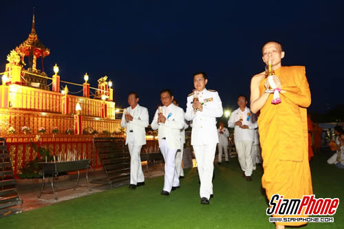 โดยในช่วงเย็นวันนี้ เวลา ๑๙.๐๐ น. พระเจ้าวรวงศ์เธอพระองค์เจ้าโสมสวลี พระวรราชาทินัดดามาตุ จะเสด็จไปทรงสดับพระธรรมเทศนา โดยมีสมเด็จพระสังฆราชาแห่งสยามวงศ์ ศรีลังกา เป็นองค์ประธานสงฆ์และพระอาจารย์อารยวังโส (พระครูปลัดวิริยวัฒน์) เป็นพระวิปัสสนาจารย์ และเวลา ๒๐.๐๐ น. จะมีการสวดพระปริตรอธิษฐานจิตเพื่อแผ่นดินไทย โดยมีสมเด็จพระสังฆราชาแห่งสยามวงศ์ ศรีลังกา เป็นประธานฝ่ายสงฆ์นำเจริญพระพุทธมนต์โดยพระอาจารย์อารยวังโสและคณะสงฆ์วัดป่าพุทธพจน์หริภุญไชย จังหวัดลำพูน ซึ่งประธานฝ่ายฆราวาส คือ ม.ล.สราลี กิติยากร จึงขอเชิญชวนพุทธศาสนิกชนทุกหมู่เหล่าเข้าร่วมงานได้ทุกวัน